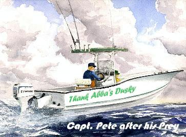 ( http://www.dusky.com ). The speed and dryness of the run make it a pleasurable craft for the days fishing. He runs half and full day trips for striped bass, bluefish, bonito, white marlin, and yellow and bluefin tuna. Pete specializes in flyfishing and in "ALL" light tackle. Pete has 21 years experience and 5 world records caught on his boat. His expertise and knowledge coupled with state of the art electronics like his Autohelm Auto-Pilot, Lowrance 350A GPS & Sounder, and Raytheon radar will get you on the fish and back safely in all WX conditions. I have gone out with Captain Pete a number of times and have been completely satisfied with the results. I've caught fish on fly (10wt Reddington and Orvis reel --my specialty) till my arms have fallen off and ached for a week (the tell tail sign of an excellent trip). Pete is by far one of the most reasonably priced guides around. Dollar for dollar you get the most bang for the buck. Contact Captain Pete at 1-508-539-9477 for more info and reservations.
